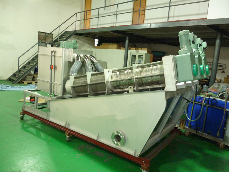 該產(chǎn)品主機(jī)由螺旋推動軸,多重固定疊片和多重游動疊片組成的疊螺式污泥脫水機(jī),固定疊片和游動疊片間有調(diào)節(jié)墊片。設(shè)備由兩個(gè)功能區(qū)組成,在污泥入口部為濃縮段,進(jìn)入脫水機(jī)的污泥經(jīng)濃縮后產(chǎn)生的濾液由脫水段固定疊片和游動疊片間隙排出;經(jīng)濃縮后的污泥進(jìn)入脫水段,受到螺旋軸進(jìn)一步壓縮而脫水成泥餅排出機(jī)外。且有較大的靈活性。自動化程度較高。