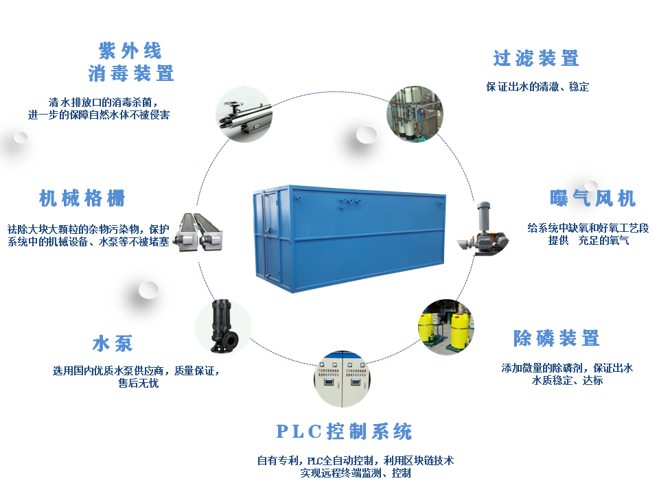 設(shè)備具有性能穩(wěn)定可靠、出水效果好、投資費用少、自動化高效運行、維護操作方便,占地面積小等特點;適用于城鎮(zhèn)住宅小區(qū)、村鎮(zhèn)、商場、賓館、療養(yǎng)院、學校、醫(yī)院等生活污水和屠宰、水產(chǎn)品加工,食品工業(yè)等有機廢水的處理和回用。