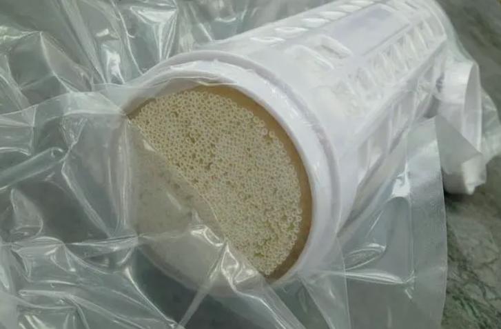 一個中空纖維超濾膜組件主要是由成百到上千根中空纖維絲和膜殼兩部分組成,一般將中空纖維內(nèi)徑在0.6-6mm之間的超濾膜稱為毛細管式超濾膜,毛細管式超濾膜因內(nèi)徑較大,因此不易被大顆粒物質(zhì)堵塞,更適用于過濾原液濃度較大的場合。