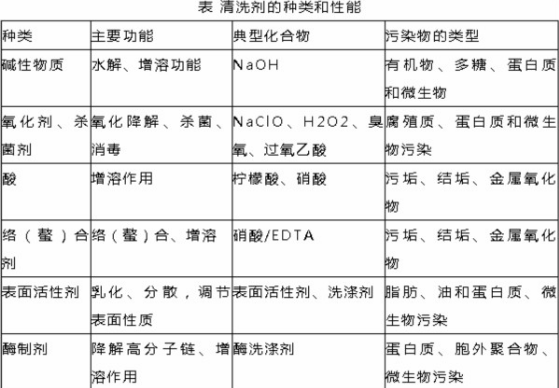 當(dāng)水反洗無效果時,為了保持膜的良好性能,有必要使用化學(xué)清洗方法去除污染物。膜的化學(xué)清洗依據(jù)污染物的具體情況有所不同,使用的清洗藥劑也不一樣?;瘜W(xué)清洗時,選擇化學(xué)藥品的原則一是不能與膜及其他組件材質(zhì)發(fā)生任何化學(xué)反應(yīng),二是不能因?yàn)槭褂没瘜W(xué)藥品而引起二次污染。