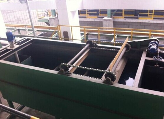 渦凹氣浮稱為旋切氣浮,渦凹氣浮機是一種主要用于去除工業(yè)或城市污水中的油脂、膠狀物及固體懸浮物而設計的污水處理設備。系統(tǒng)主要由曝氣裝置、刮渣裝置和排渣裝置組成,其中曝氣裝置主要是渦凹曝氣機,刮渣裝置主要由刮渣機和牽引鏈條組成,排渣裝置主要為螺旋推進器,如下圖所示。工作時,溶氣設備由電機帶動高速旋轉(旋
