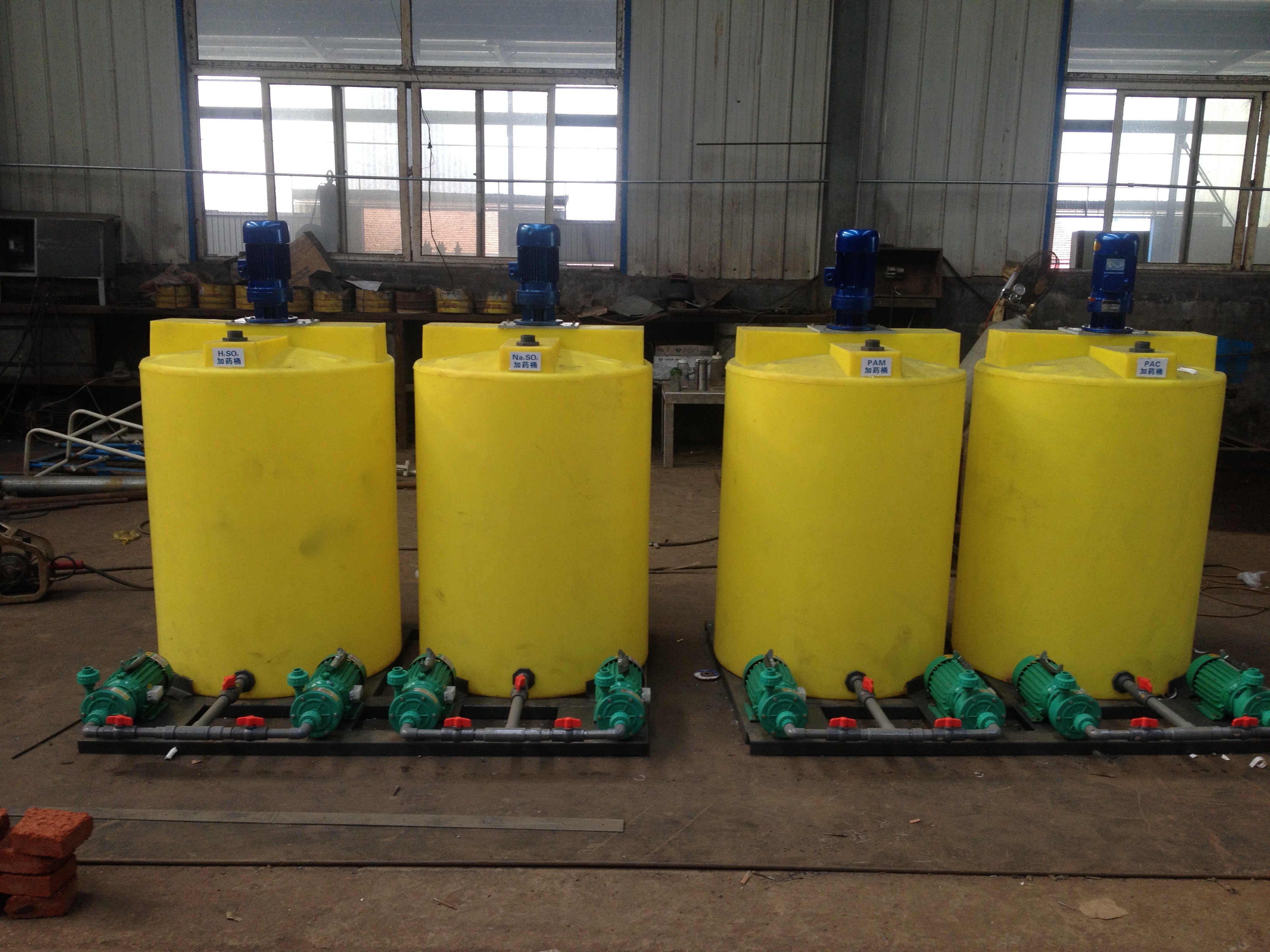 絮凝劑的投加都有一個經(jīng)濟(jì)性能比最佳的范圍,因此絮凝劑的投加量需要經(jīng)過燒杯試驗初步確定后再根據(jù)實際運行情況予以調(diào)整。而要想實現(xiàn)準(zhǔn)確的調(diào)整,絮凝劑系統(tǒng)必須有一個比較準(zhǔn)確的計量。干式投加一般有計量容積和計量質(zhì)量兩種方法,兩者的誤差分別為5%左右和1%左右。濕式投加有縱重力投加、水射器投加、計量泵投加等方式,都是計量所加絮凝劑的容積。中小規(guī)模的混凝處理系統(tǒng)的絮凝劑投加一般使用計量泵投加方式,人工調(diào)整和自動調(diào)整都能很容易地實現(xiàn)。